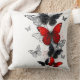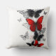 Bando de borboletas voadoras, realistas, vermelhas e pretas em fundo branco com gotas de tinta.