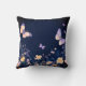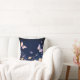 Lindas borboletas roxas e rosa fazem sua casa no jardim das flores. O fundo azul profundo proporciona uma sensação de acalmia para qualquer espaço que você coloque este travesseiro.