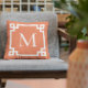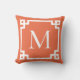 Almofada Borda-chave grega do Monograma Branco e Laranja