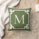 Almofada Borda-chave grega monograma verde-oliva e branco