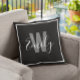 Almofada Borda do Monograma Branco Preto Moderno