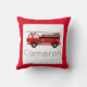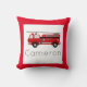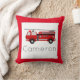 Este travesseiro decorativo bonito mostra uma ilustração artística de um caminhão de fogo vermelho. A imagem é emoldurada por uma borda de cinza pálida e um nome de amostra é impresso abaixo do caminhão de bombeiros. A borda externa do travesseiro é uma cor vermelha que corresponde ao caminhão de bombeiros.