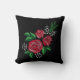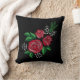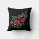 Um belo travesseiro decorativo de bordado com flores brancas pequenas e rosas vermelhas com folhas verdes sobre fundo preto faz uma incrível decoração domiciliar. Presente perfeito para aniversário, casamento ou festa de inauguração. Um presente de excelente para aqueles que amam bordados e natureza.