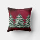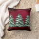 Três majestosas árvores verdes, criadas pela aquarela, suas verdes cobertas em parte pela neve, ficam altas contra o fundo de um rico gradiente de burgundy que mostra um murmúrio, névoa, olhando para o topo.