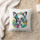 Cachorro "Cute Boston Terrier Dog" rodeado de flores rosa, amarelas e azuis. Ai art. presente bonito para os donos de Boston Terrier. Mãe de Boston. Impressão de pata.