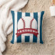 Perfeito para seu fã de beisebol. Este travesseiro decorativo personalizado dá um toque personalizado com esta ilustração de baseball, listras de marinho e até mesmo um couro falso de volta para um nó divertido na luva!