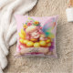 Bela, floral brilhante, doce sonho dormindo fada vestindo uma coroa de flores margarida com fundo rosa.