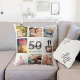 Um presente único para um aniversário de 50 anos (ou qualquer idade), celebrando sua vida com uma colagem de 8 fotos, fotos. Personalize e adicione seu nome, 50 anos e uma data. Um fundo branco chic. Cinzas e letras e números negros. O nome é escrito com um moderno estilo escrito à mão.