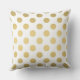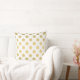 O design de travesseiro de sotaque quadrado apresenta um padrão gráfico geométrico de grandes bolinhas. As cores são branco e ouro