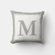 Um grande monograma de cinzas aparece sobre um fundo branco. O monograma tem uma cinza e borda branca. Personalize o travesseiro decorativo branco e cinza com o seu monograma/inicial.
