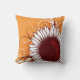 Características deste design um grande girassol branco com um centro de Borgonha em um fundo alaranjado.