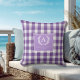 Travesseiro Elegante e Rústico com Crista de Monograma em Xadrez Roxo.