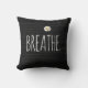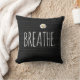 Texto branco "BREATHE" com uma margarida branca sobre fundo de madeira preta. O padrão de texto e fundo pode ser alterado.