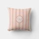 Para este travesseiro de praia listrada de laranja claro, digite sua versão inicial na seção Personalizada. Este travesseiro decorativo oferece uma aparência suave e fresca em pêssego suave (laranja claro acastanhado) com sua inicial cercada de pêssego. É certo para uma casa de praia, uma sala de verão ou na Flórida, um quarto de dormitório, ou qualquer casa. As cores lembram as camisas de praia listradas e os sorrisos de laranja cremosos de sherbert. Este travesseiro se mistura e combina com uma coleção antiga de marítimos em cores semelhantes e complementares.