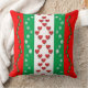 Linda textura do tecido (você pode ver o padrão do tecido) em formas verdes e vermelhas brilhantes. Alguns têm corações. Dourada trim completa a aparência de uma adorável travesseiro para a época de Natal.