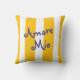 This pillow's elegant, playful striped pattern features colorful yellow orange marigold and white stripes, with whimsical chic script that says "Amore Mio" in bright blue. This upbeat, bright design will add sun-drenched color to your home, with a nod to the Italian coast.