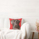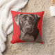 Esta almofada mostra a minha gaveta de um marrom chocolate, Labrador Retriever, contra um fundo vermelho brilhante