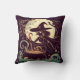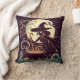 Uma bruxa misteriosa atira um caldeirão borbulhante, lançando feitiços sob a luz pálida da lua de cheio, acompanhada por um gato brincalhão dançando à noite.