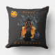 A cena rustica do Halloween mostra uma bruxa assustadora usando magia feroz. Ela está em frente a uma velha árvore assustadora com pequenas velas nos galhos e ao lado dela está seu gatinho preto e um jack preto o'lantern. No céu está uma lua laranja com morcegos voando sobre ela. Diz Feliz Dia das Bruxas acima e abaixo da bruxa.