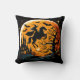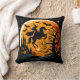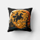 Almofada Bruxa montando um cavalo contra a lua de Halloween