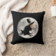 Uma bruxa feia cavalgando uma vassoura sobre o céu da lua de cheio. Este travesseiro faz uma bela decoração durante o outono e a temporada do Halloween. Você pode personalizar a cor preta do plano de fundo para a cor escolhida, selecionando o botão "Personalizar" e escolhendo um plano de fundo diferente.