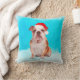 Bulldog Sentado na neve com o Travesseiro da Praça Santa Hat de Natal. Uma ideia perfeita para alguém que ama esta raça de cachorro.