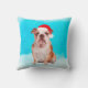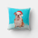 Almofada Buldogue Sentado na neve com Natal Santa Hat