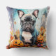 Almofada Bulldog Francês Halloween Com Pumpkins Assustado