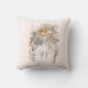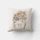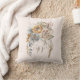 Um travesseiro com um bonito buquê de flores em cores neutras de marrom, pêssego e laranja. Um apanhador de sonhos com penas adiciona um elegante talento místico.