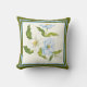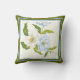 Buquê elegante de flores azuis e brancas com travesseiro decorativo floral americano MoJo, na fronteira azul, verde-oliva, apresentando flores azuis e brancas lindas em uma fronteira verde e azul sobre fundo marfim. Um design elegante, elegante, com retrô/vintage sente-se nele, mas moderno ao mesmo tempo.