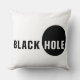 Texto do Buraco Negro e um círculo ou disco preto de um lado e buraco branco invertido e fundo preto de outro lado. Presentes, impressões, t-shirts e outros produtos para diversão e bom humor. Travesseiro decorativo engraçado para qualquer um.