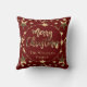 Estrelas de Script Douradas Falsas Vermelhas Borgonhentas, Padrão Travesseiro decorativo de Decoração de Natal Feliz, Adicionar Nome ou Texto