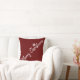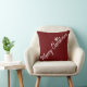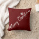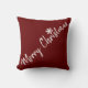 Burgundy Red Merry Christmas Snowflakes Travesseiro decorativo. Feliz Natal em um roteiro de tendências. A parte de trás tem flocos de neve brancos em um fundo vermelho e arrojado.