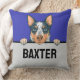 Um travesseiro decorativo personalizado de Blue Heeler para amantes de cães, com um fofo Blue Heeler AKA australiano Cattle Dog espreitando sobre uma borda e uma caixa de texto personalizada onde você pode digitar o nome de seu cachorro ou qualquer outro texto. Um presente personalizável e divertido para qualquer mãe de cão Blue Heeler, pai, treinador ou amante de cachorro.