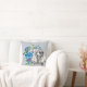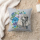 Preso neste arranjo de flores azuis e roxas é uma bela imagem aquática de um cão Poodle cinza. Tudo é colocado sobre uma cinza de prata pálida. Ambos os lados do travesseiro têm a mesma imagem.
