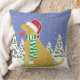 Ouro de Natal Festivo Cão Feriado de Retriever vestido com chapéu Santa e cachecol verde e branco segurando enfeites de natal vermelha na boca. Inverno de neve. Bela ideia de presente de natal para amantes de laboratório e amantes de cachorro! Os desenhos do Preppy Dog © EMR. Designs.