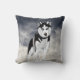 Este travesseiro decorativo apresenta um Rouco preto e branco na frente contra um céu Siberiano tempestuoso.