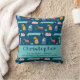 Padrão de cão engraçado, pequeno e colorido. Travesseiro bonito personalizado com o nome e as estatísticas de nascimento do seu pequeno.