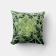 Este travesseiro decorativo toma-o direito no centro de um teste padrão exótico do cacto. As espinhas verdes e brancas irradiam em um design abstrato circular em um fundo preto.