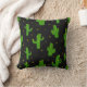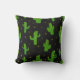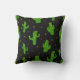 Almofada preta divertida impressa com plantas de cacto verdes. Almofada com padrão de cactos de desenho animado.