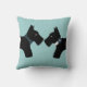 Estes doces cachorros negros são escoceses, também conhecidos como Scottish Terriers, um símbolo da sua nativa Escócia, mas amados em todo o mundo. De um lado desse travesseiro reversível está um padrão repetitivo do casal de cachorro escocês, do outro um de perto. A cor de fundo pode ser personalizada clicando no botão laranja Personalizar! e selecionando na paleta de cores.