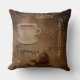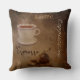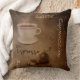Amantes de café podem comemorar a paixão pelo feijão com este travesseiro decorativo com um design gráfico de canecas a vapor e arte de palavras relacionada ao café.