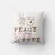 Um legal design de tipografia para amantes de café, que diz: Paz, amor, café.