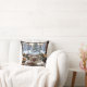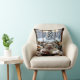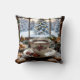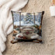 Belo travesseiro decorativo de Natal único com uma ilustração festiva de uma xícara de café quente, rico, junto a um prato de biscoitos de açúcar e bastões de canela.