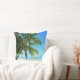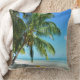 Travesseiro decorativo com um caiaque amarelo sob uma palmeira de suspensão em uma praia branca da areia na ilha tropical de Moorea, perto de Tahiti, no arquipélago pacífico Polinésia francesa.