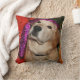 Este travesseiro decorativo caracteriza um caixa de fortuna do golden retriever com uma bola de cristal.