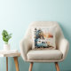 Travesseiro de decorador com uma campista na praia no pôr do sol. Personalize com seu próprio texto.