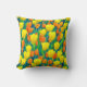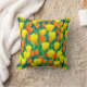 Travesseiro decorativo em padrão de tulipas laranja e amarela e folhas verdes em campo