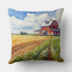 Este travesseiro decorativo apresenta uma imagem aquosa de um celeiro vermelho cercado por um campo de milho. Um belo céu azul pendura. É o travesseiro perfeito para quem aprecia a beleza simplista da vida fazenda.