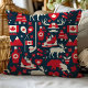 Travesseiro decorativo canadense de Padrão de Mose de Inverno no Natal. Lindos elementos vermelhos e brancos do inverno canadenses contra um fundo azul marinho. Destacados com alce, árvores de natal, bandeira do Canadá, folha de maple e skates de gelo. Perfeito para o Natal e feriados.